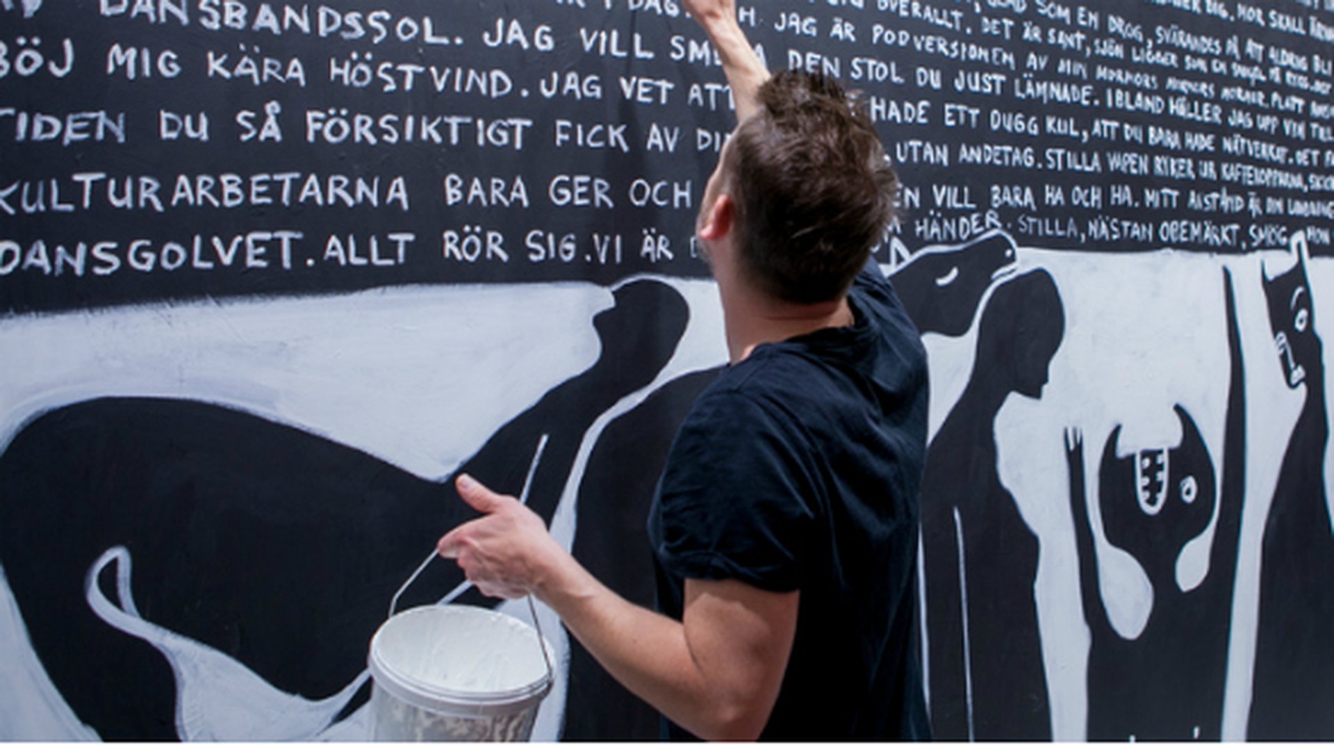 One piece being auctioned is a four-meter-long wall painting by popular Swedish artist Jesper Waldersten. Other authors and illustrators with works being auctioned include Elaine Eksvärd, Kakan Hermansson, Per Wästbnerg, Stina Wirsén, Elin Olofsson, Malin Persson Giolito, Annika Lantz, Jennifer Clement, Johanna Ekström, Sofil Oksanen, Anna Åhlund, Jens Lapidus and Johan Unenge, among others.